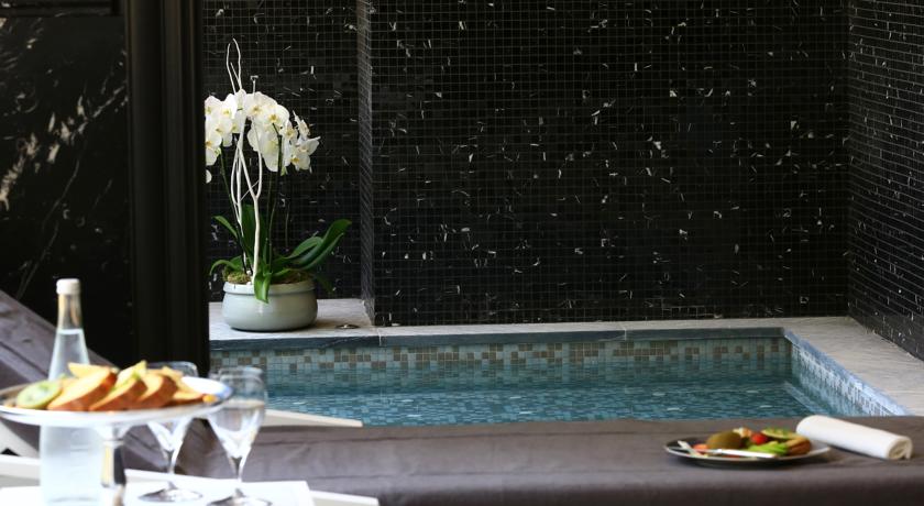 Petit paradis de marbre dépoli noir et blanc, lumière douce, hammam et gommages, chuchotements et relaxation, piscine intérieure et sauna, huiles essentielles et lâcher prise, jacuzzi avec vue et salle de fitness, vibrations… respiration.