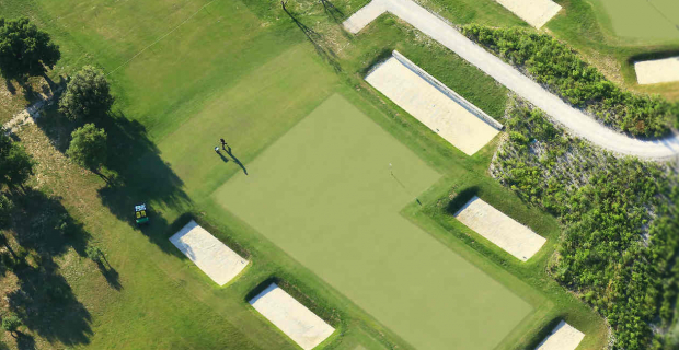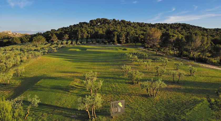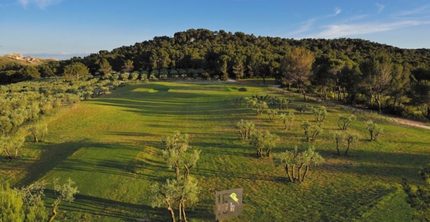 Un golf de caractère signé Thierry Sprecher et AnneLaure Ricci des ateliers Pep’s. Un golf où la retranscription paysagère des éléments de jeu répond à une évocation agricole : bunkers géométriques soutenus par des murets de pierres sèches, formes géométriques des greens et départs, bunkers enherbés plutôt qu’ensablés, délimitation des fairways comme des parcelles agricoles, oliviers et cours d’eau intégrés comme des obstacles… Un golf très attachant. Un chemin de jeu équilibré, émouvant, aux sensations plurielles. Un golf technique aussi, présentant une belle diversité dans le dessin de chaque trou. D’une longueur de 5502 mètres, il est adapté à tous les niveaux...