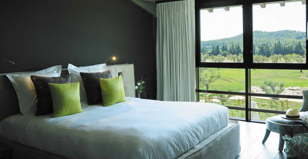 Le seul hôtel 5 étoiles au pied d’un golf comme un “palace rural” où le luxe se lit dans la douceur de vivre, les draps frais, le lever du soleil sur les pierres sèches, les fleurs des champs dans des grands vases, le calme et la volupté, l’odeur du pain et du beurre, le bon miel des ruches du domaine, l’huile de bain, la piscine belle comme un bassin, le massage du matin…
