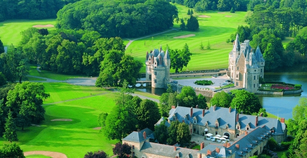 Parcours de golf 18 trous en par 72 de 6080 m. A la frontière du pays Breton et du Val de Loire, dans un cadre majestueux, le golf est implanté au coeur d'un domaine boisé de 1100 ha. Le parcours de golf 18 trous exceptionnel de 6080 m propose de larges fairways avec des greens techniques sur une surface de 234 ha autour du château.
