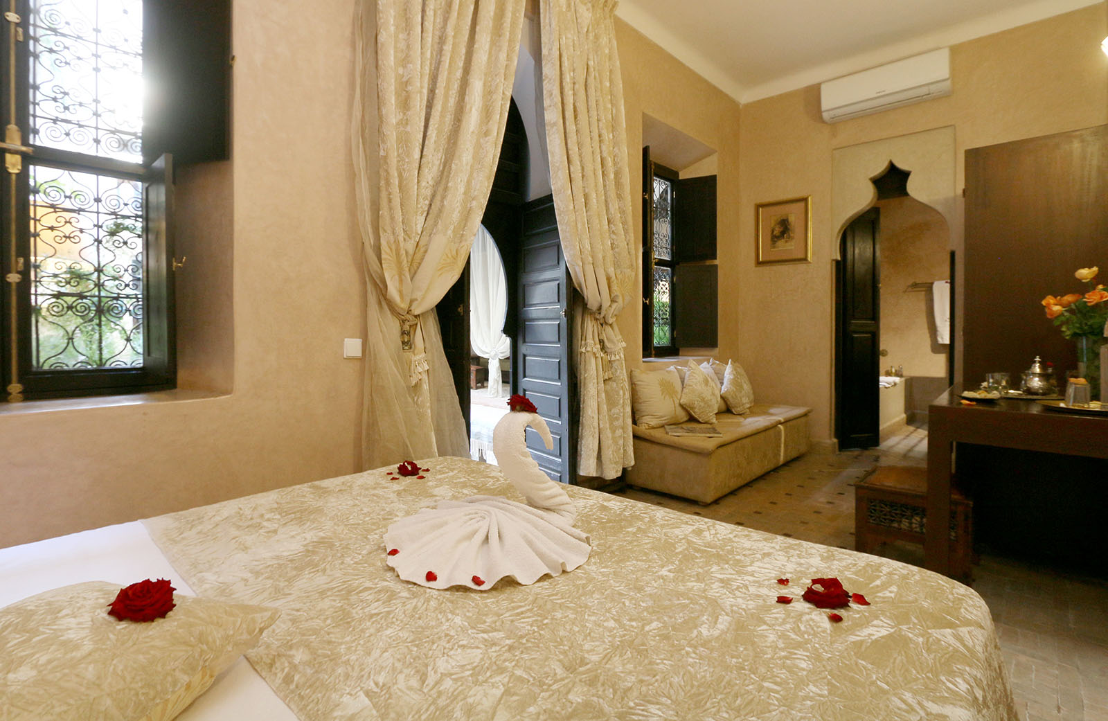 Vous séjournerez au domaine des Remparts un riad de charme 5*, à l'écart des tumultes de la ville rouge. Cest la destination rêvée pour un séjour golf à Marrakech. Vous retrouverez dans son architecture le charme du concept d'un Riad traditionnel, allié au confort le plus raffiné.