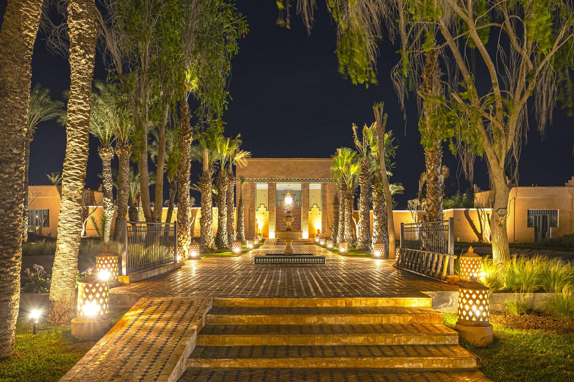 Au coeur de ce complexe hôtelier et résidentiel se trouve un magnifique parcours de 18 trous par 72, tout droit sorti de l'imagination de l?architecte au 500 parcours: Mr Trent Jones. Le complexe touristique du golf de la palmeraie est situé en plein coeur de la très célèbre palmeraie de Marrakech au bord de l'oued Tensift qui traverse la ville de Marrakech.