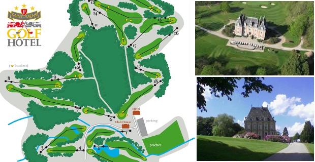 Le parcours de Saint-Saens est un par 71 de 6009m et se caractérise par la variété de son tracé entre la vallée, le fôret et le plateau, et offre aux joueurs une grande diversité dans leur jeu. L'omniprésence de la fôret d'Eawy et le château dominant la vallée conférent au golf l'élégance et le charme naturel de la campagne normande.