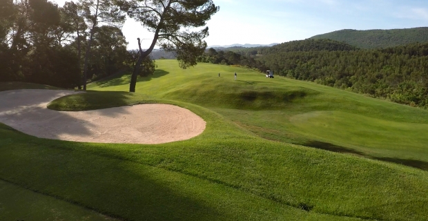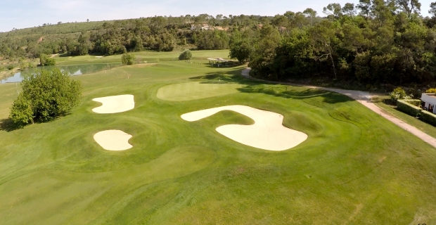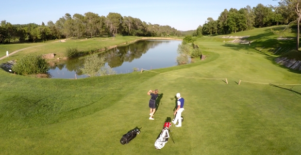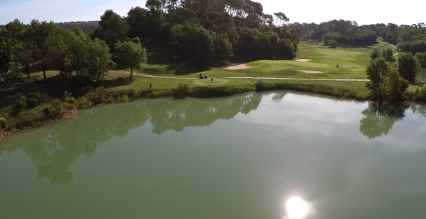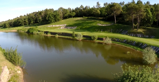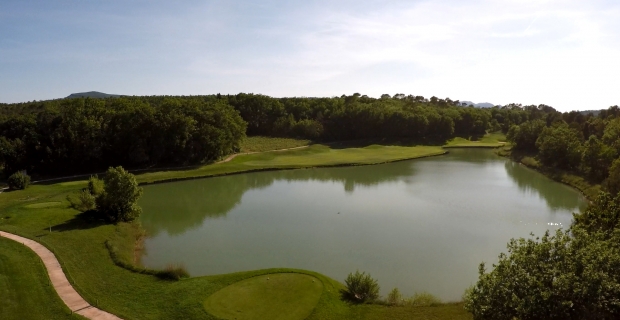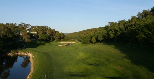 « Dessiné par les architectes américains Pete et P.B. DYE qui y ont apporté leur signature caractéristique, notamment la présence de traverses de chemins de fer ceinturant les lacs. Le parcours s'étend dans la forêt varoise, commençant par un Par 4 où le premier problème est de décider combien de lacs on ose survoler. Le N°3 est un trou « à l'aventure » nécessitant l'usage d'un fer 4 ou d'un bois 5 pour un second coup à l'approche d'un green aveugle et éloigné, alors que le N°4 est un Par 3 dont l'accès se fait par un tunnel sous le green ».